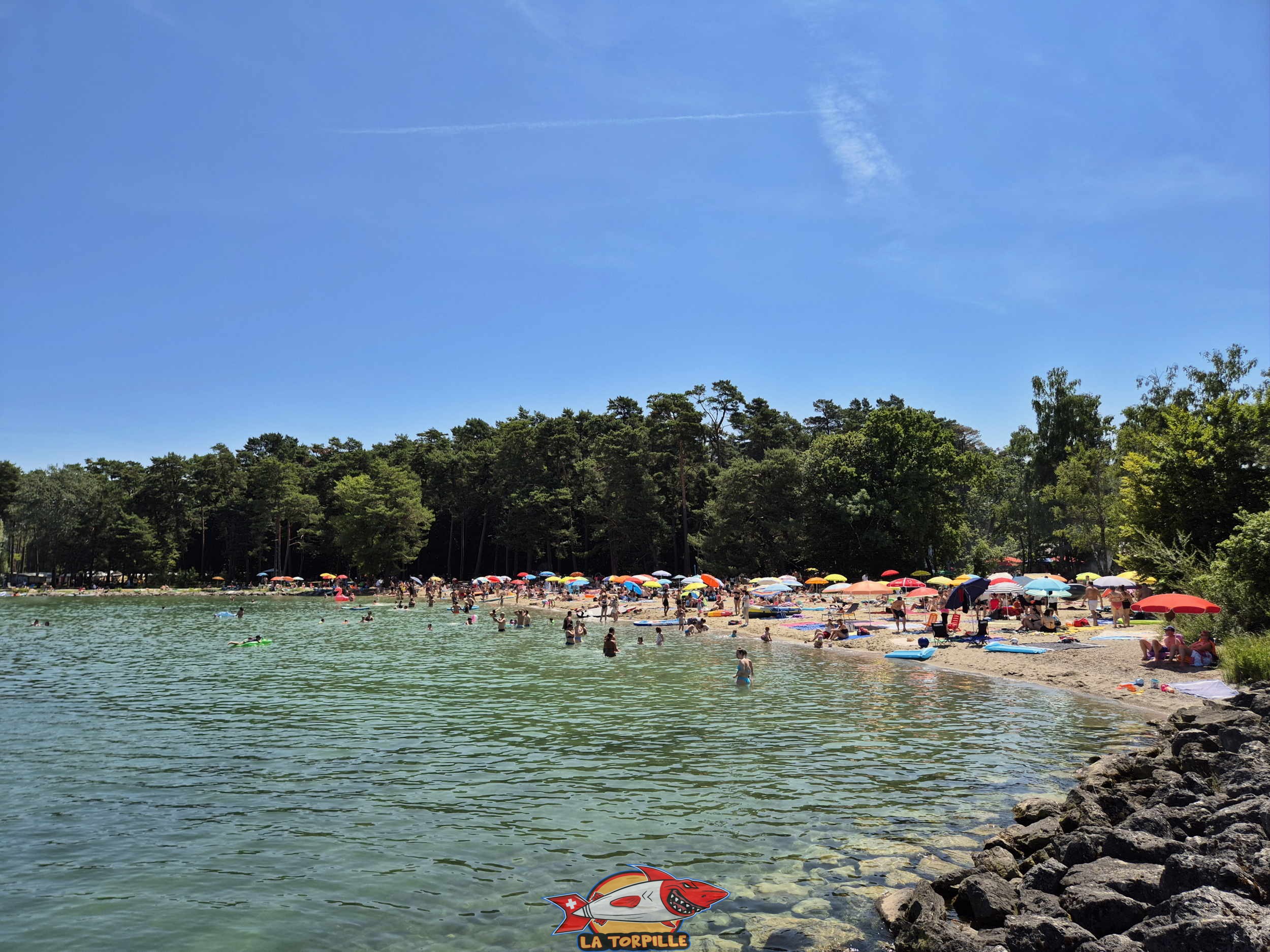 Les vestiaires et toilettes se trouvent dans la buvette de la plage.