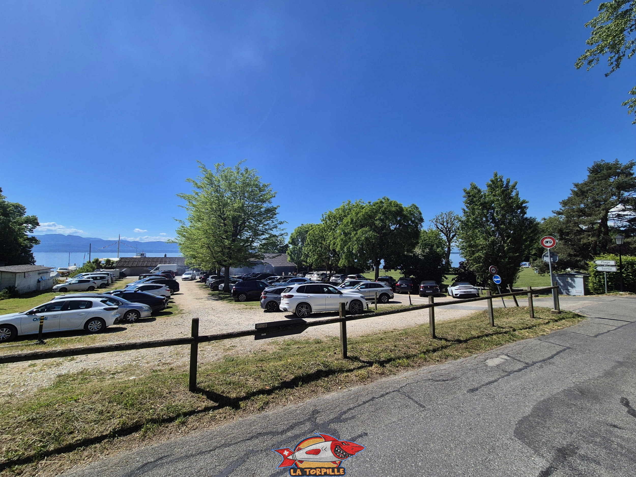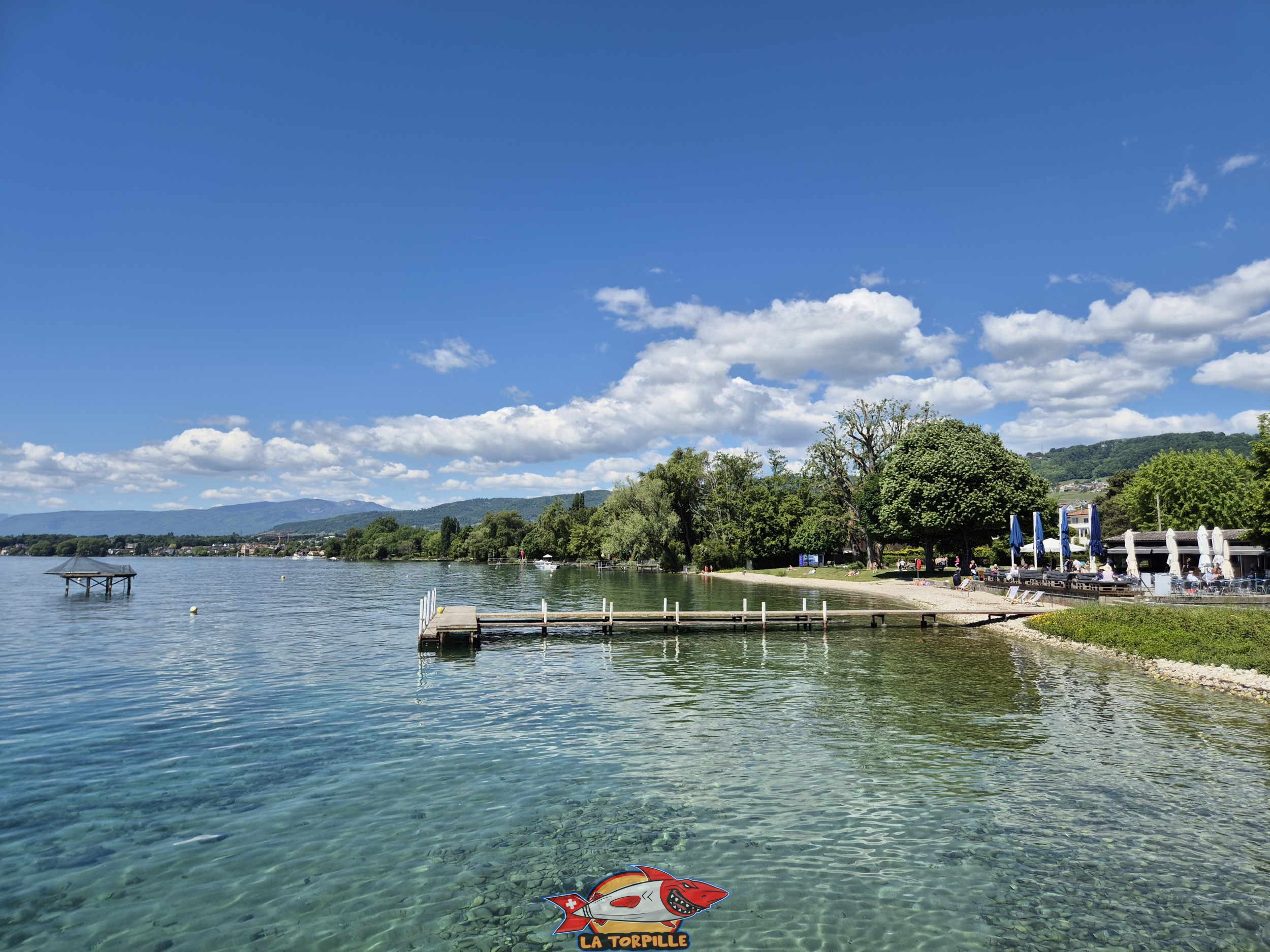 La plage du Plongeon se trouve au bord du Léman, à Perroy, juste à côté de Rolle, dans le canton de Vaud.