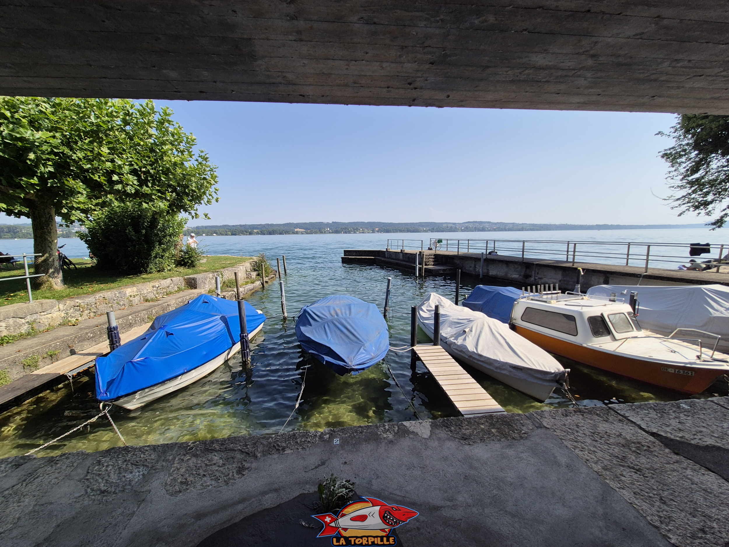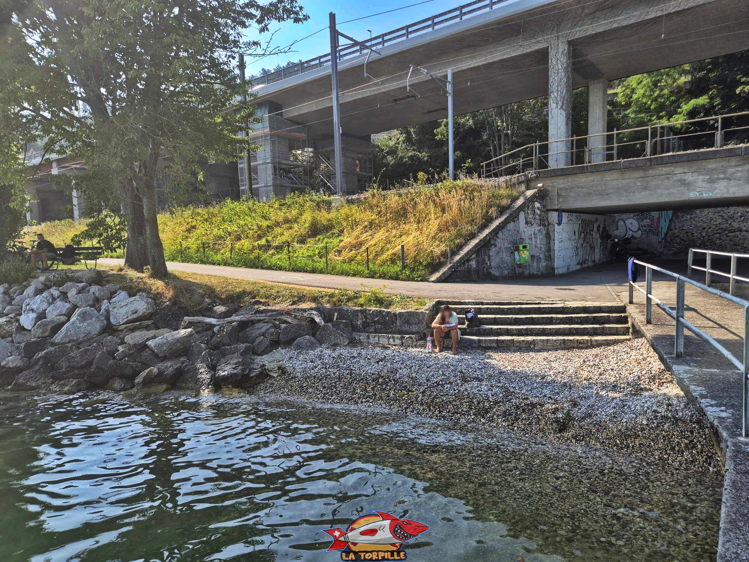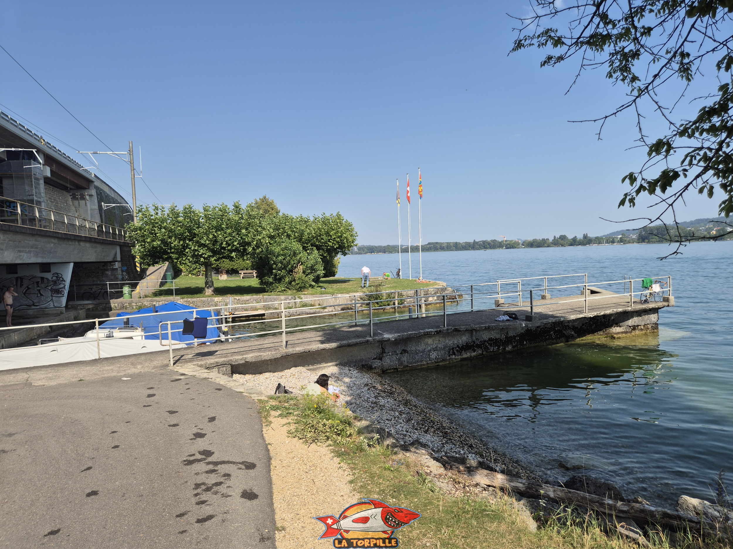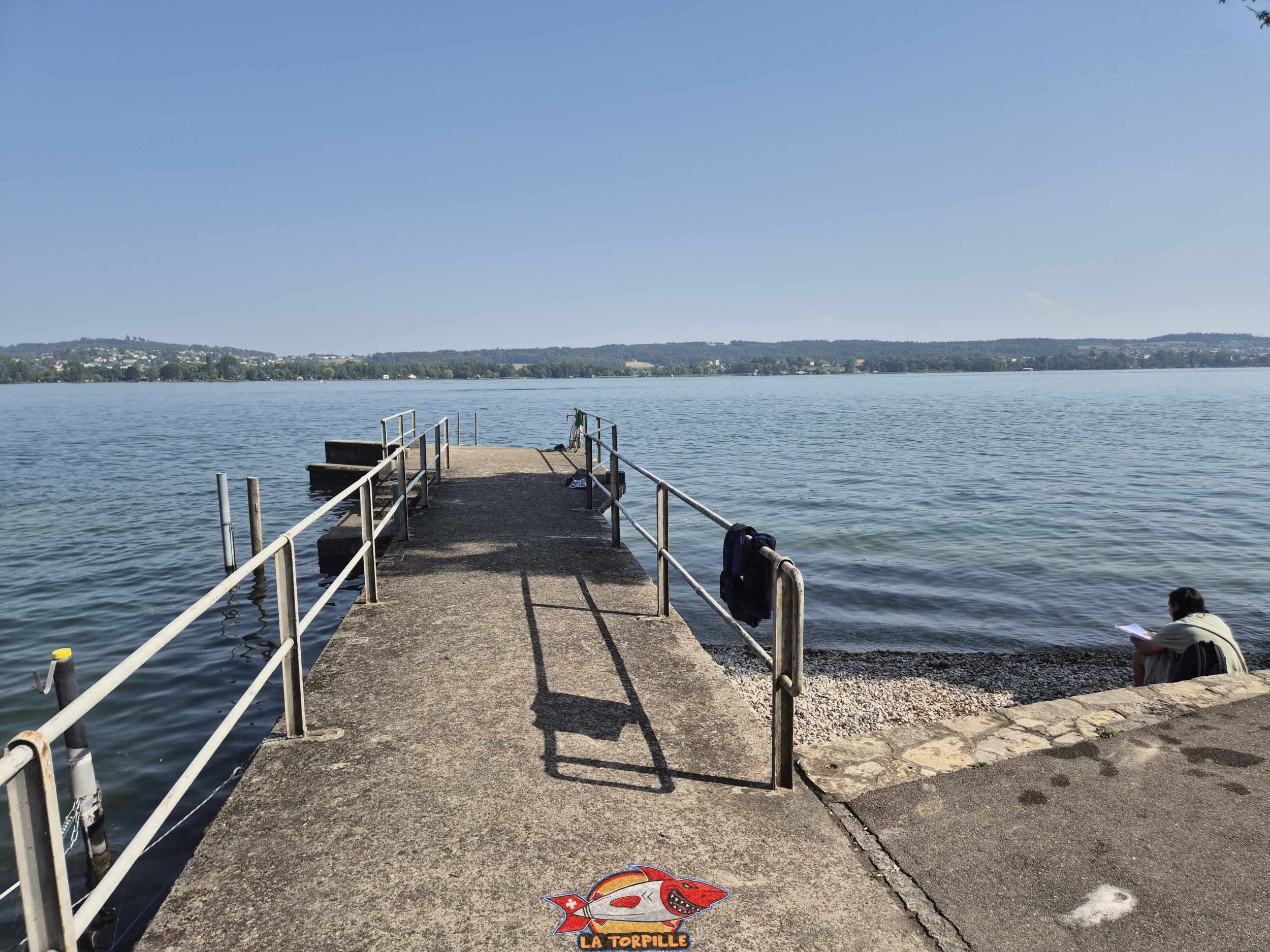 La plage du port d’Alfermée. Sur la droite, le chemin du bord du lac ou chemin des rives (Uferweg).