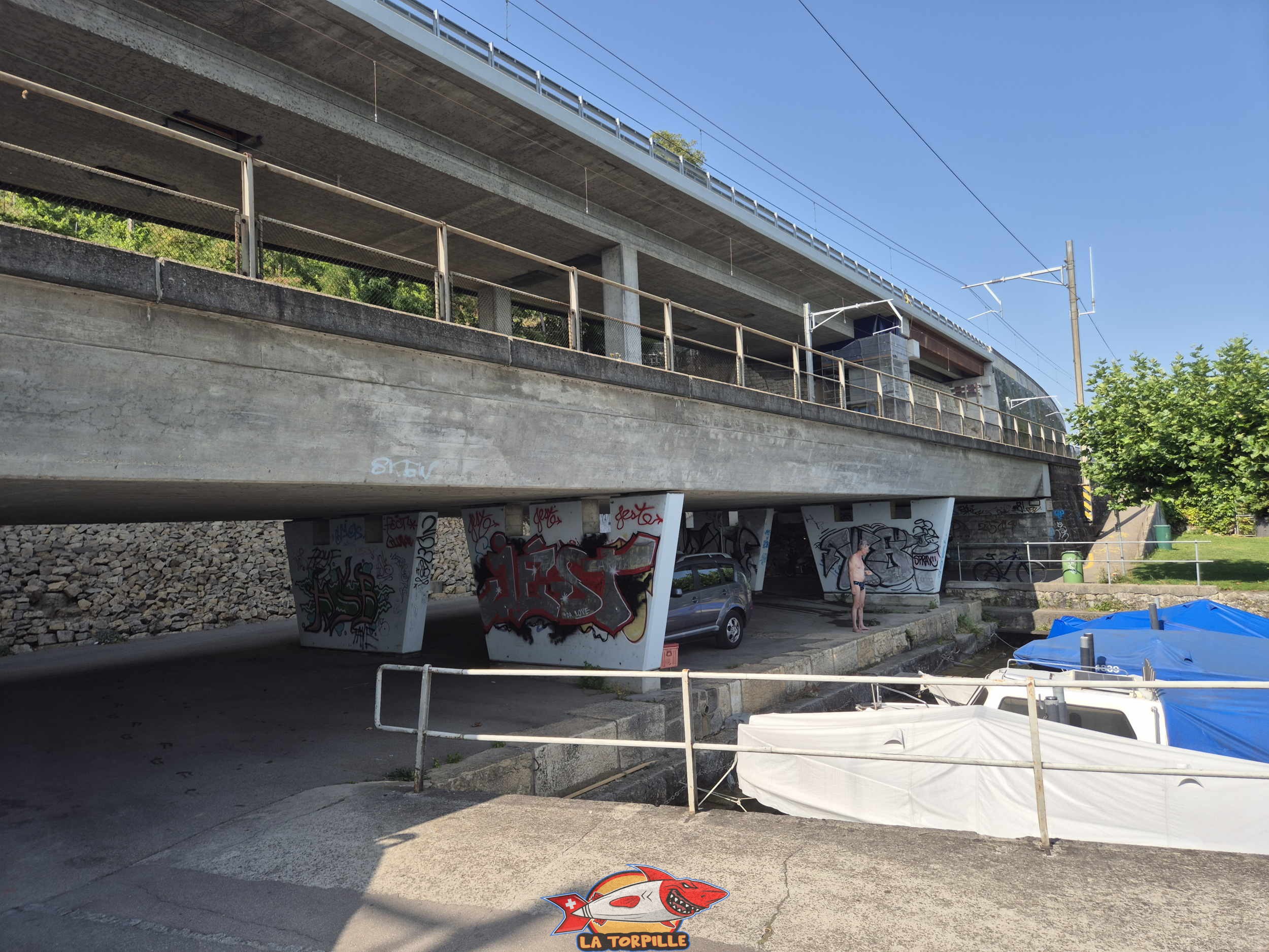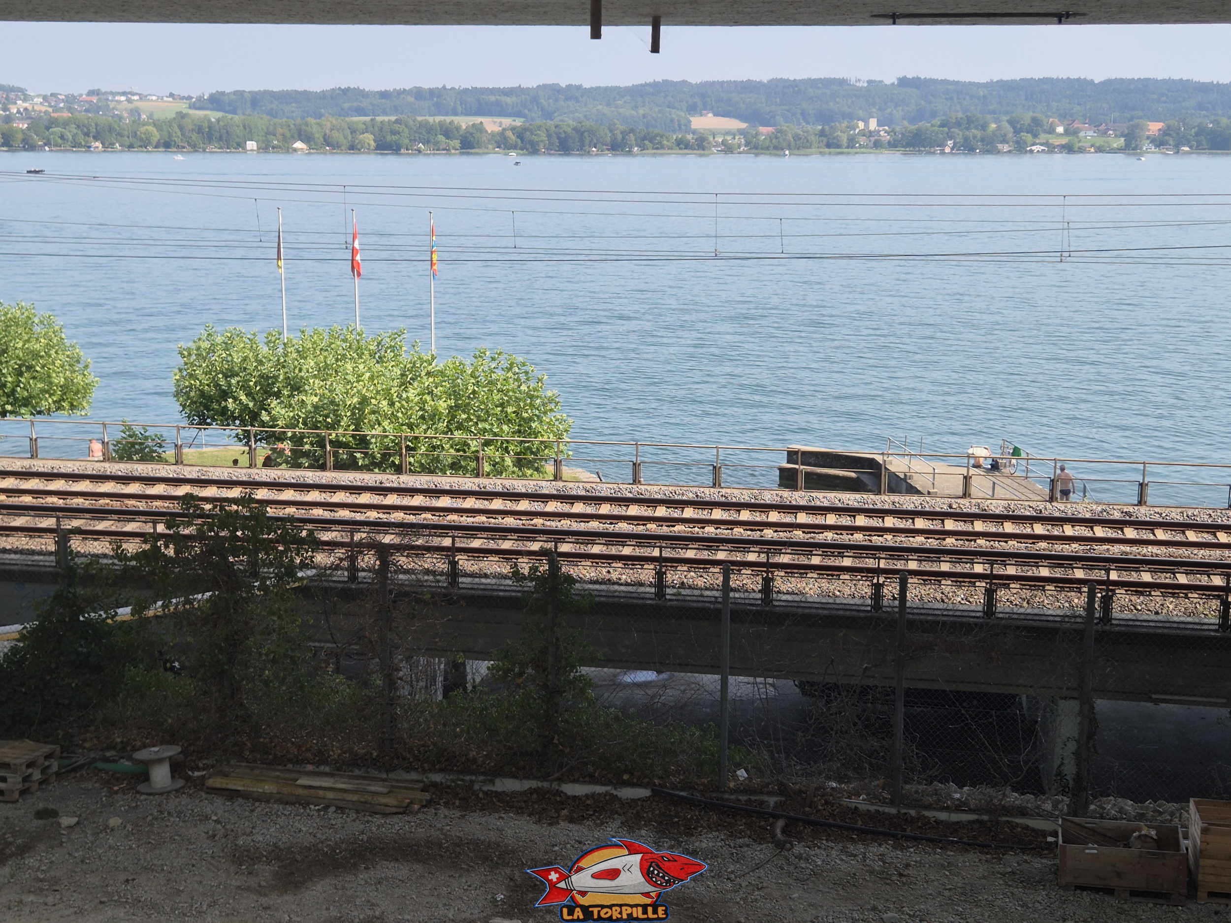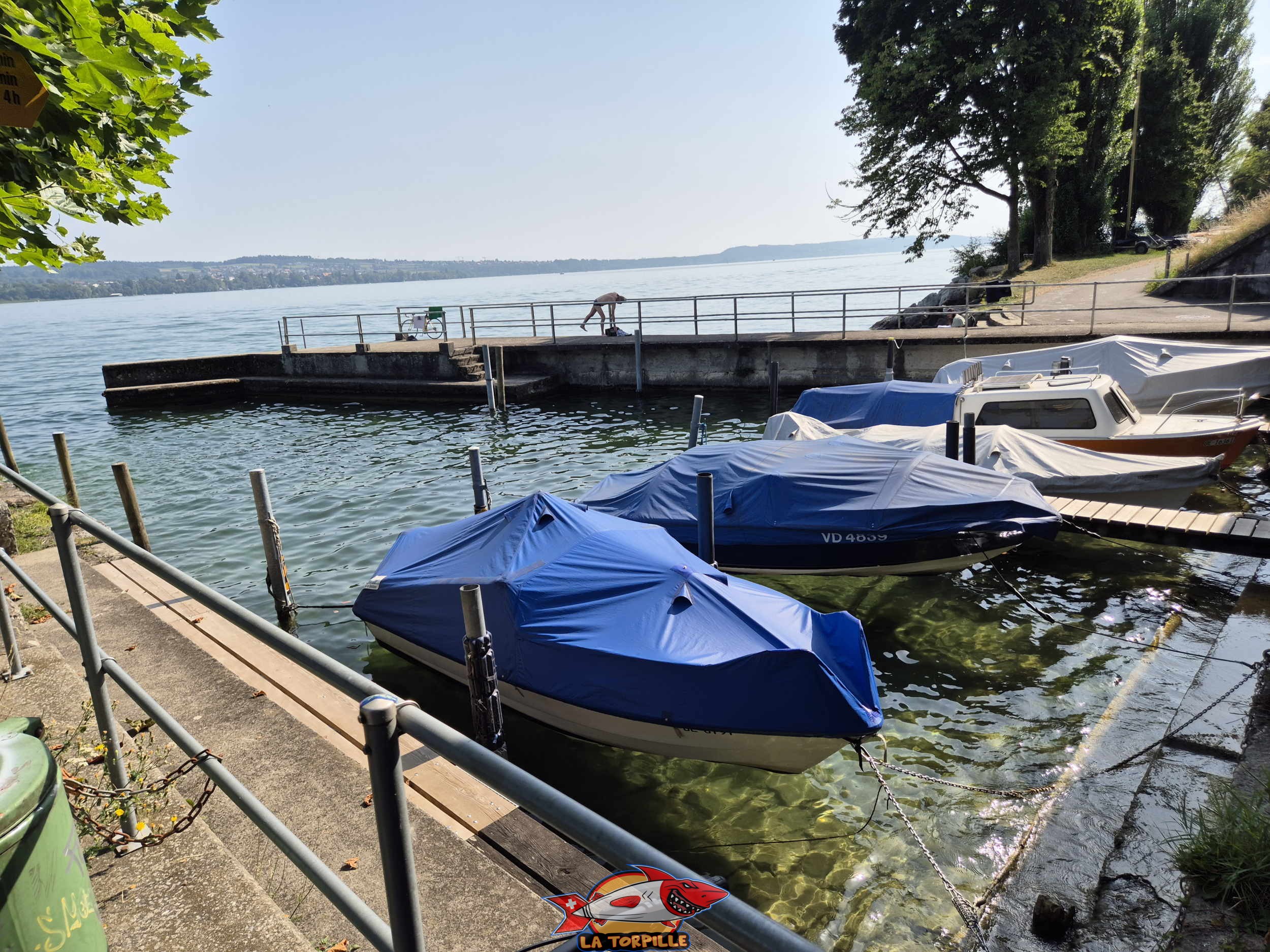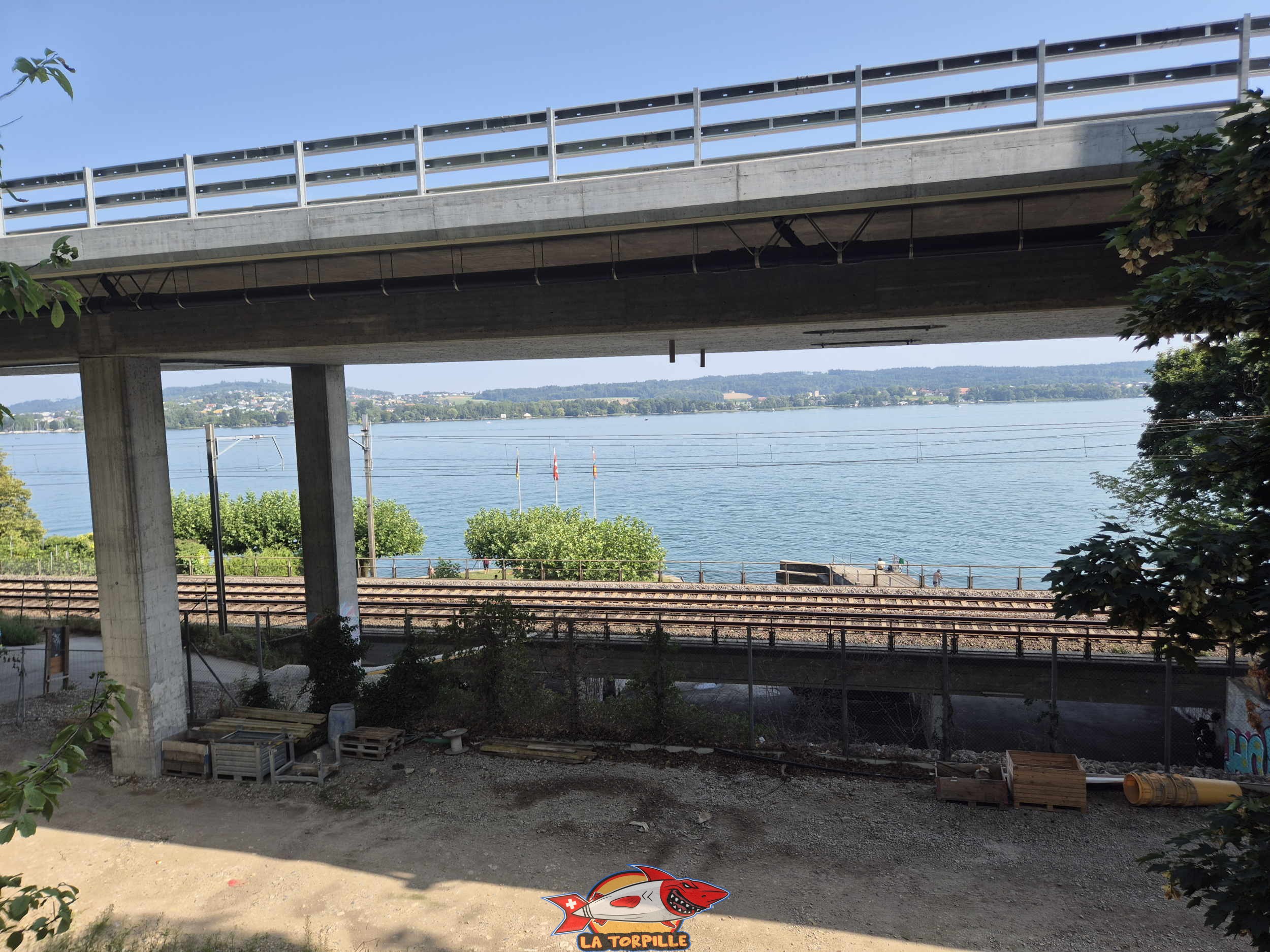 La plage du port d’Alfermée. Sur la droite, le chemin du bord du lac ou chemin des rives (Uferweg).