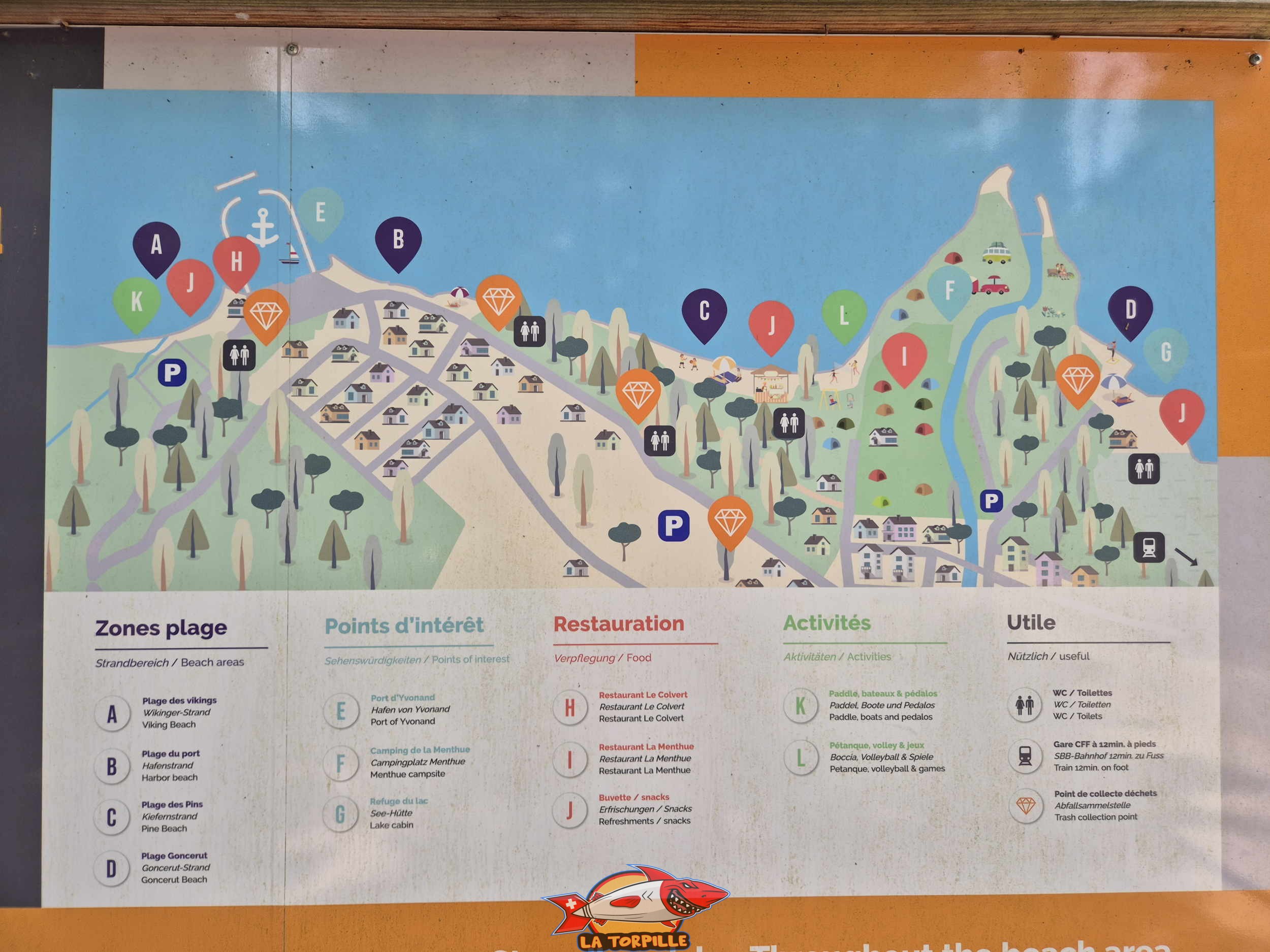 Le plan des quatre plages principales d’Yvonand.