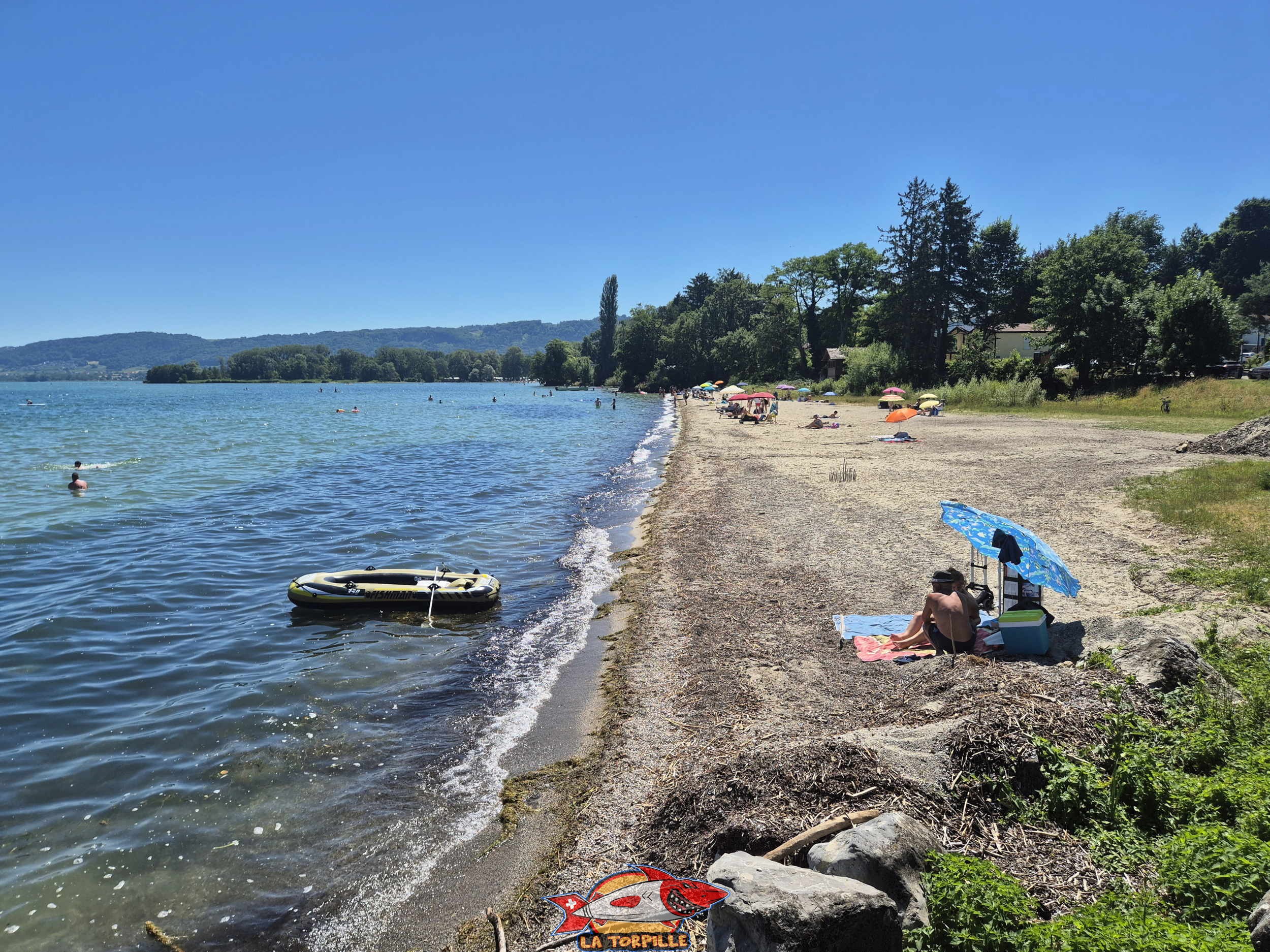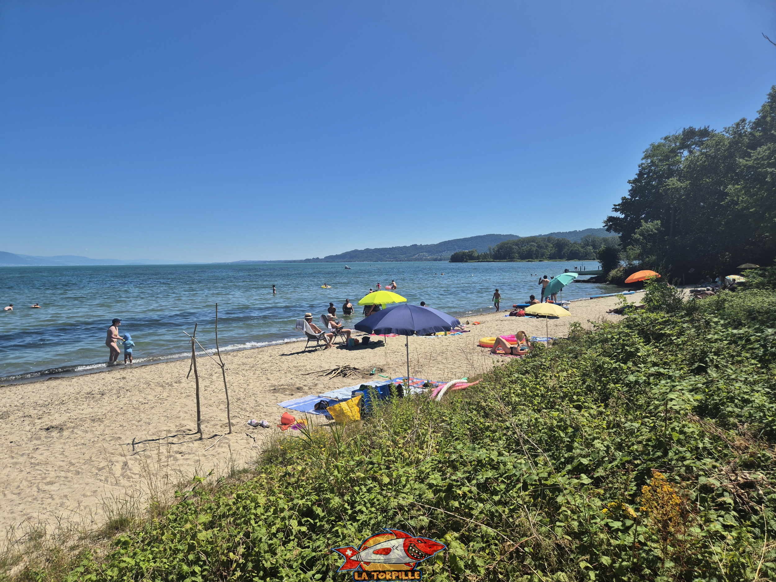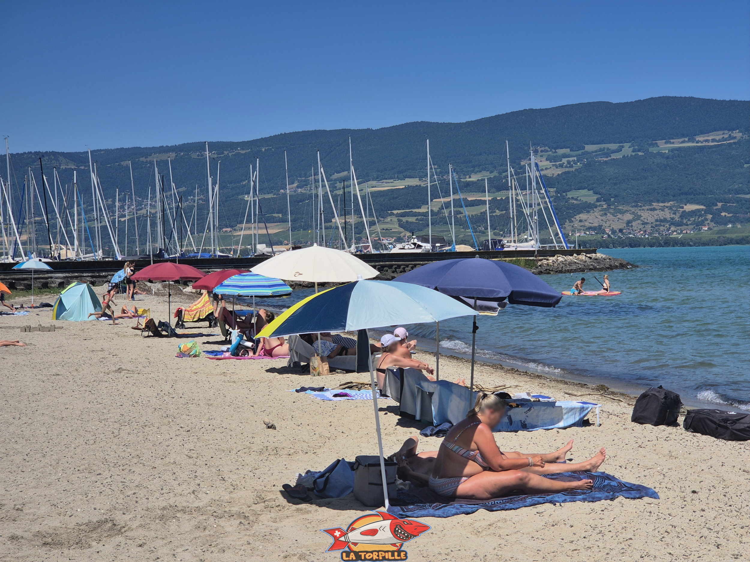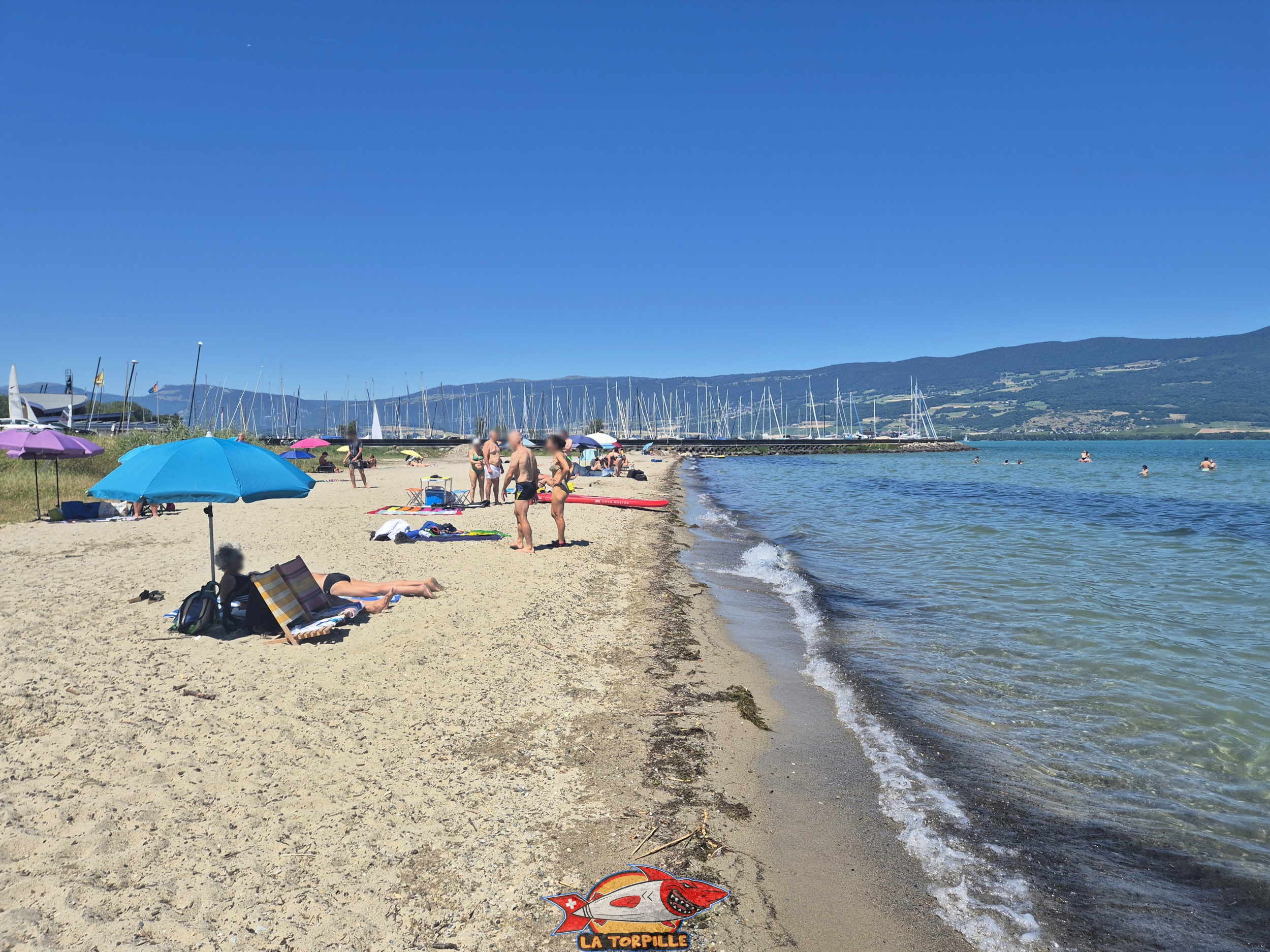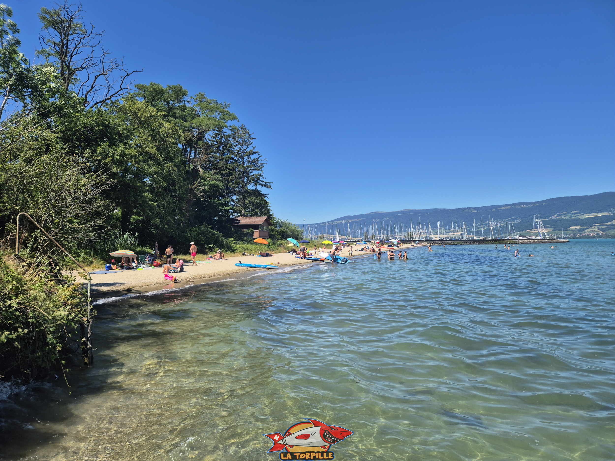 La vue sur la plage du port d’Yvonand depuis le côté ouest.