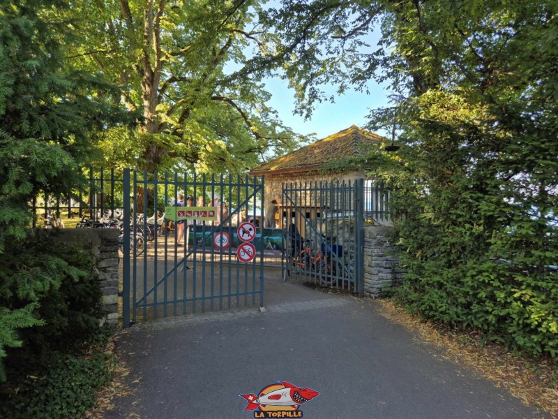 L’entrée du Jardin botanique, par le sud, depuis le chemin du bord du lac. La plage Nautica se trouve tout près de cet endroit.
