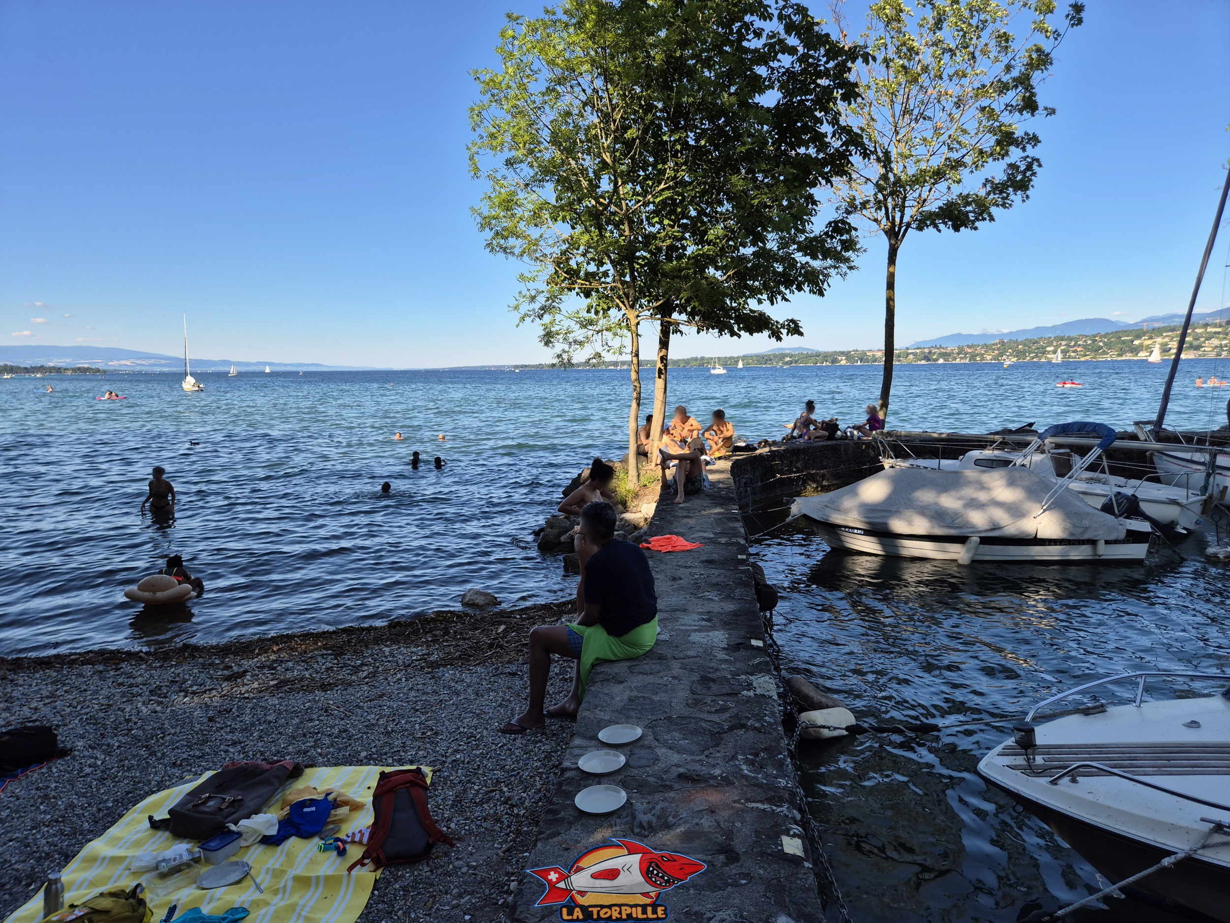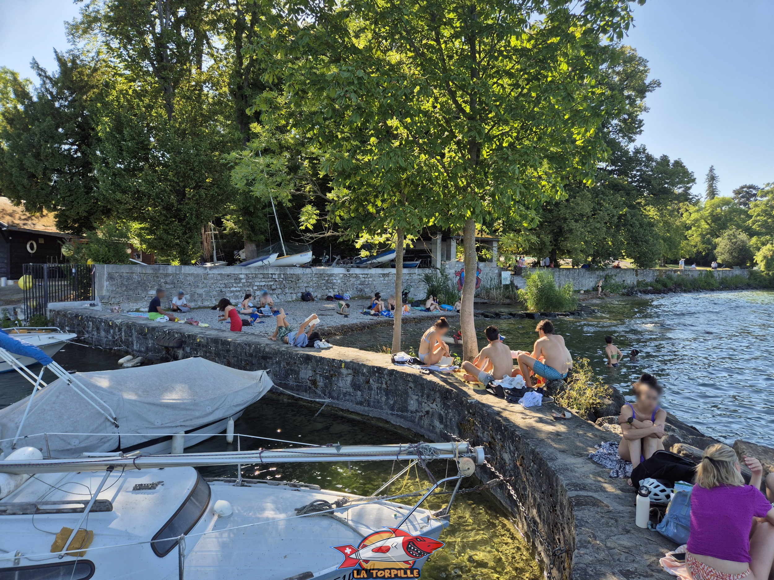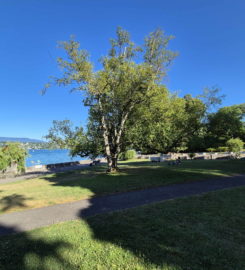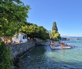 La petite plage, à côté du port Nautica, est composée de petits galets et d’enrochements. Des surfaces de pelouse sont disponibles dans le Jardin botanique et le parc William-Rappard.