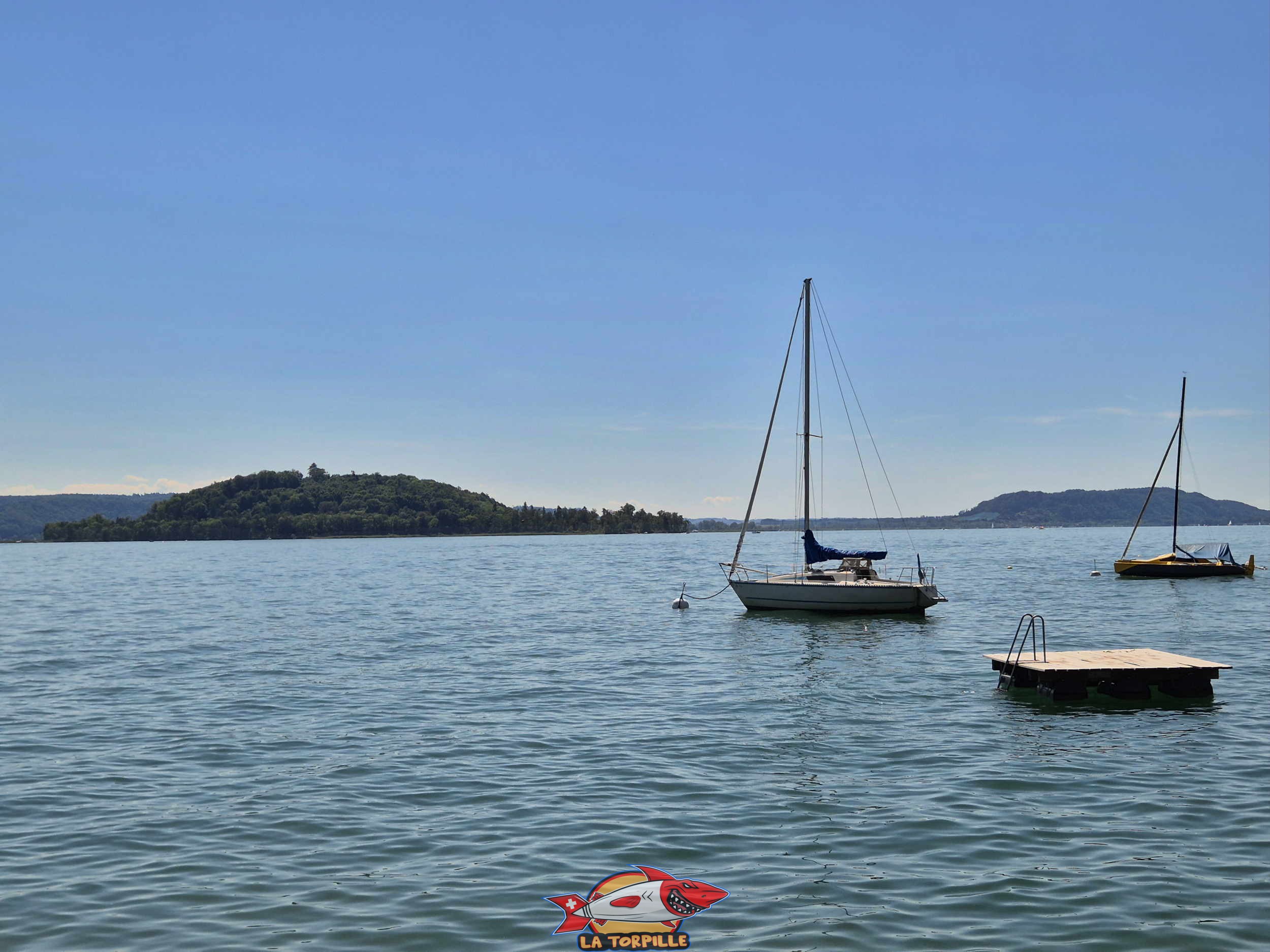 L’île St-Pierre depuis le bateau de la compagnie de navigation BSG (Bielersee Schifffahrt).