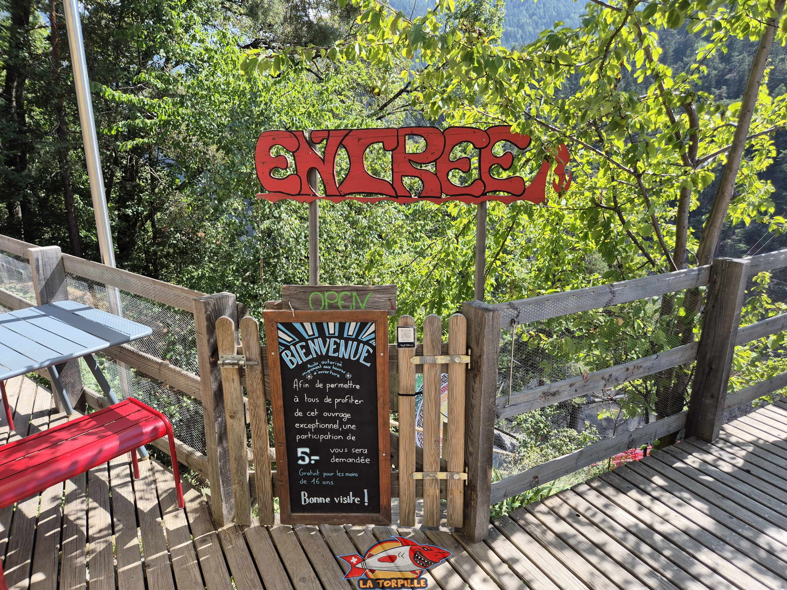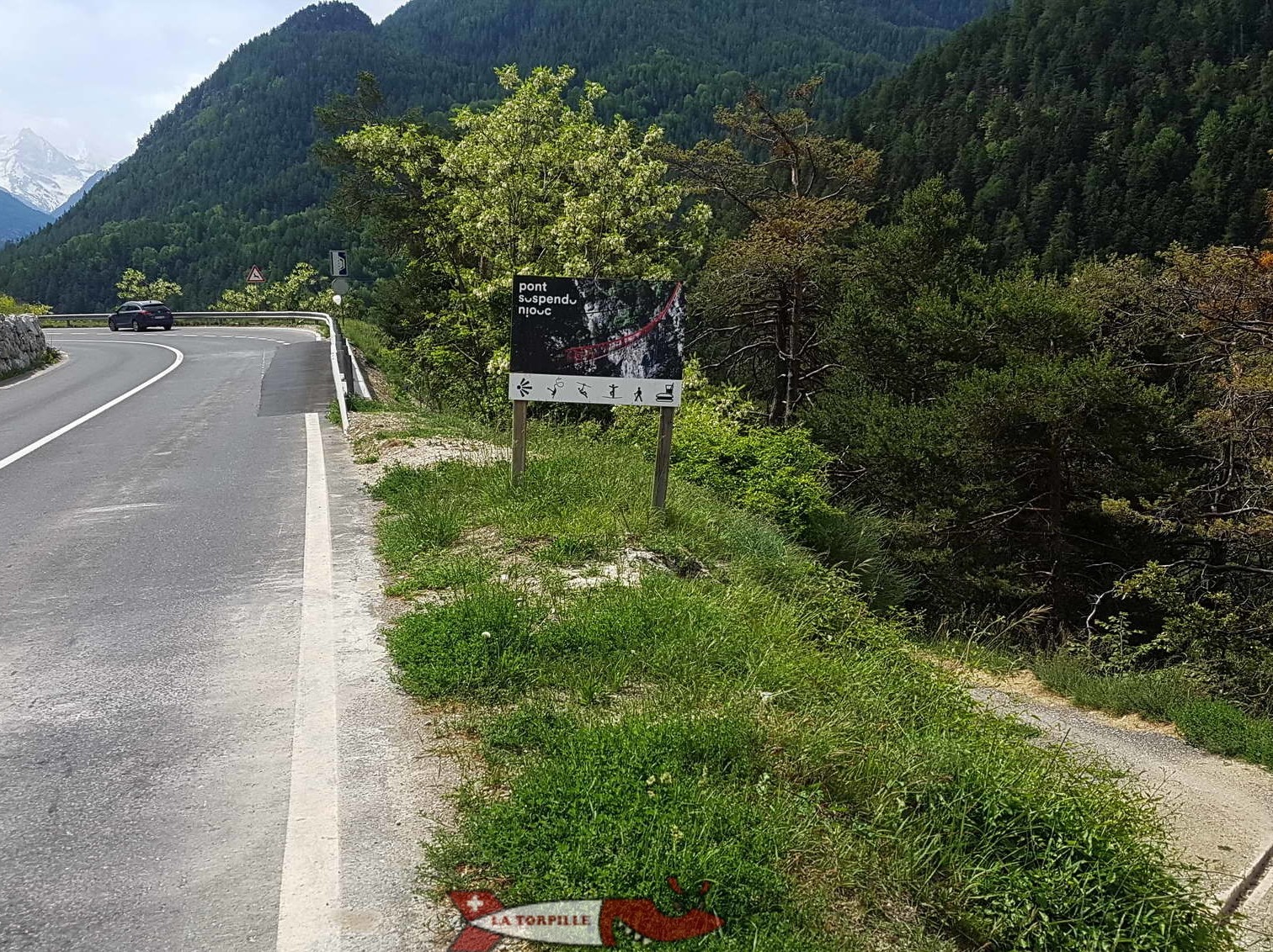 L’accès à la passerelle de Niouc se fait par la route qui grimpe sur le versant est du val d’Anniviers, en une dizaine de minutes depuis Sierre.