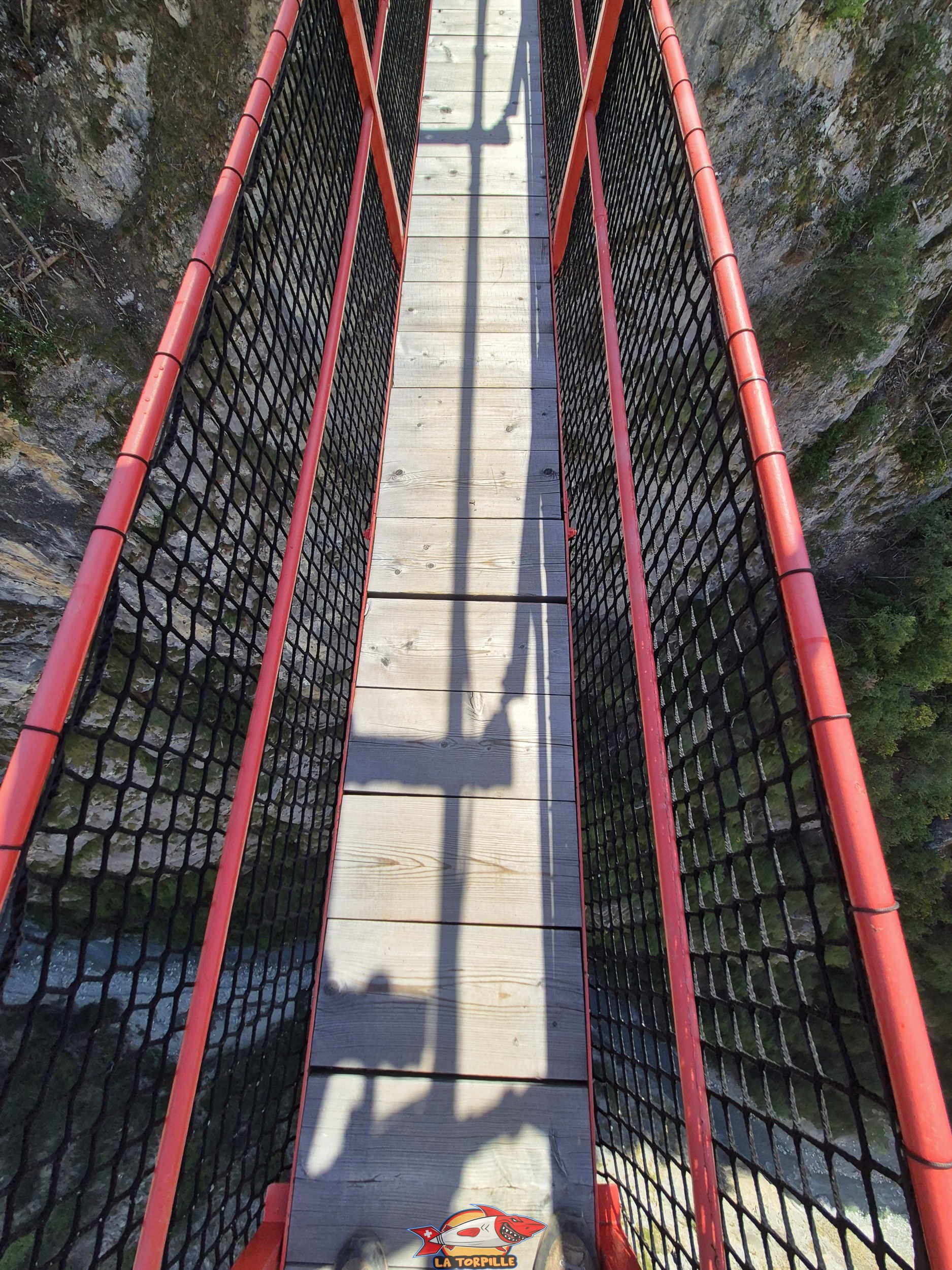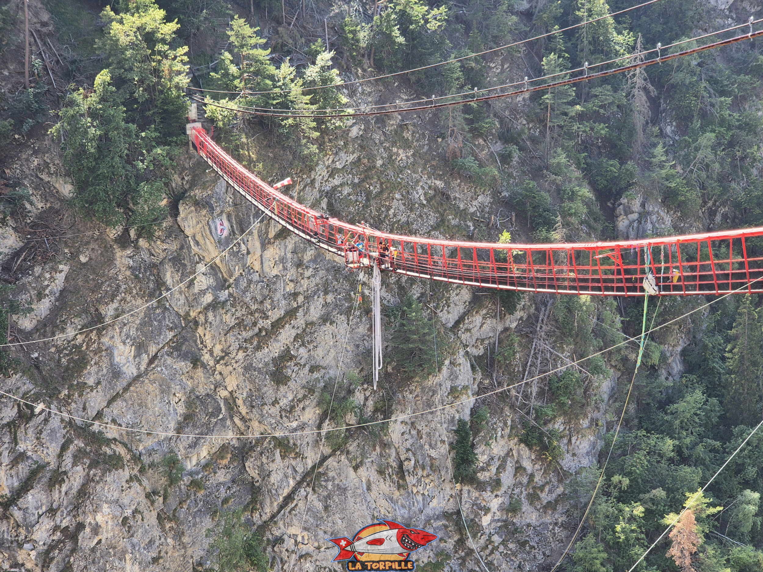 La tyrolienne traverse les gorges, le retour se fait par le pont suspendu.
