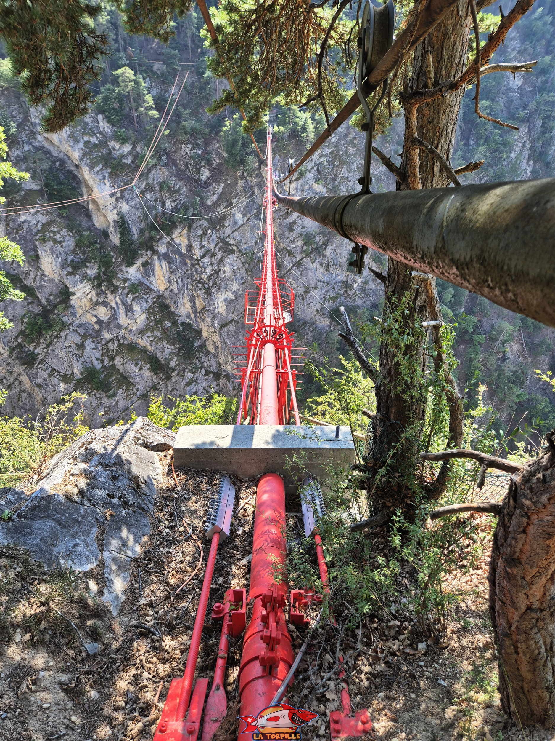 Les points d’ancrage et l’arrivée de la tyrolienne côté ouest.