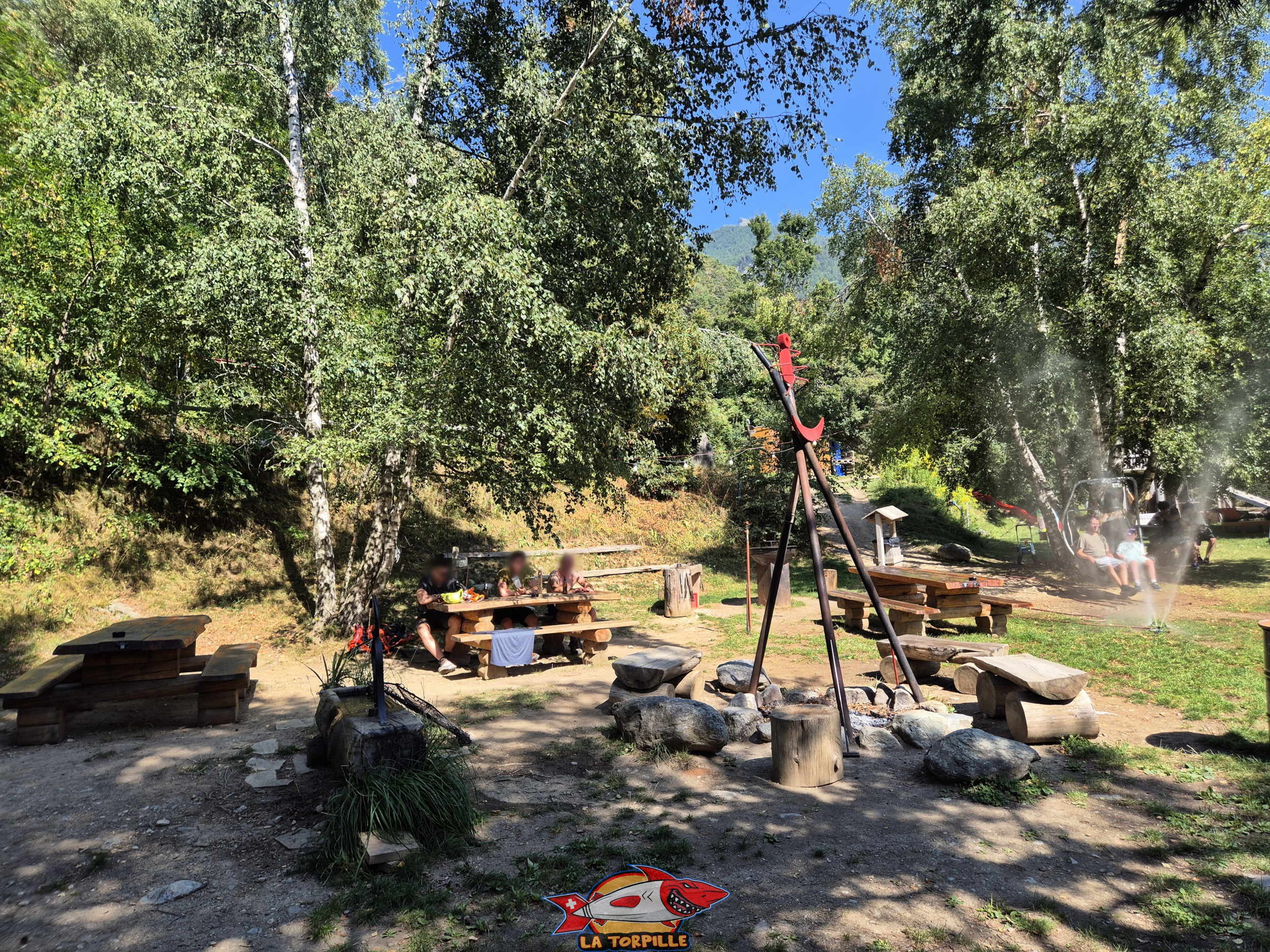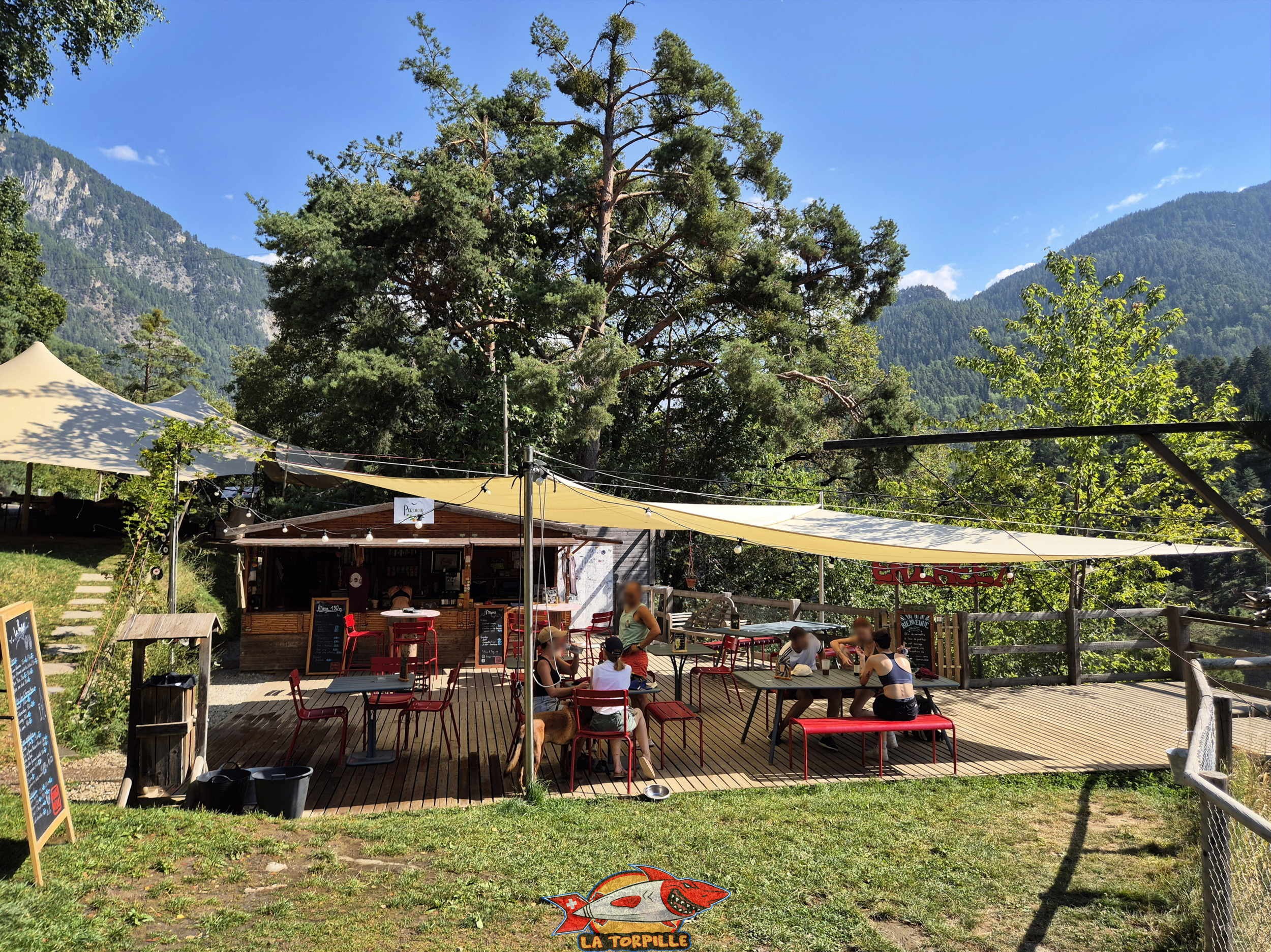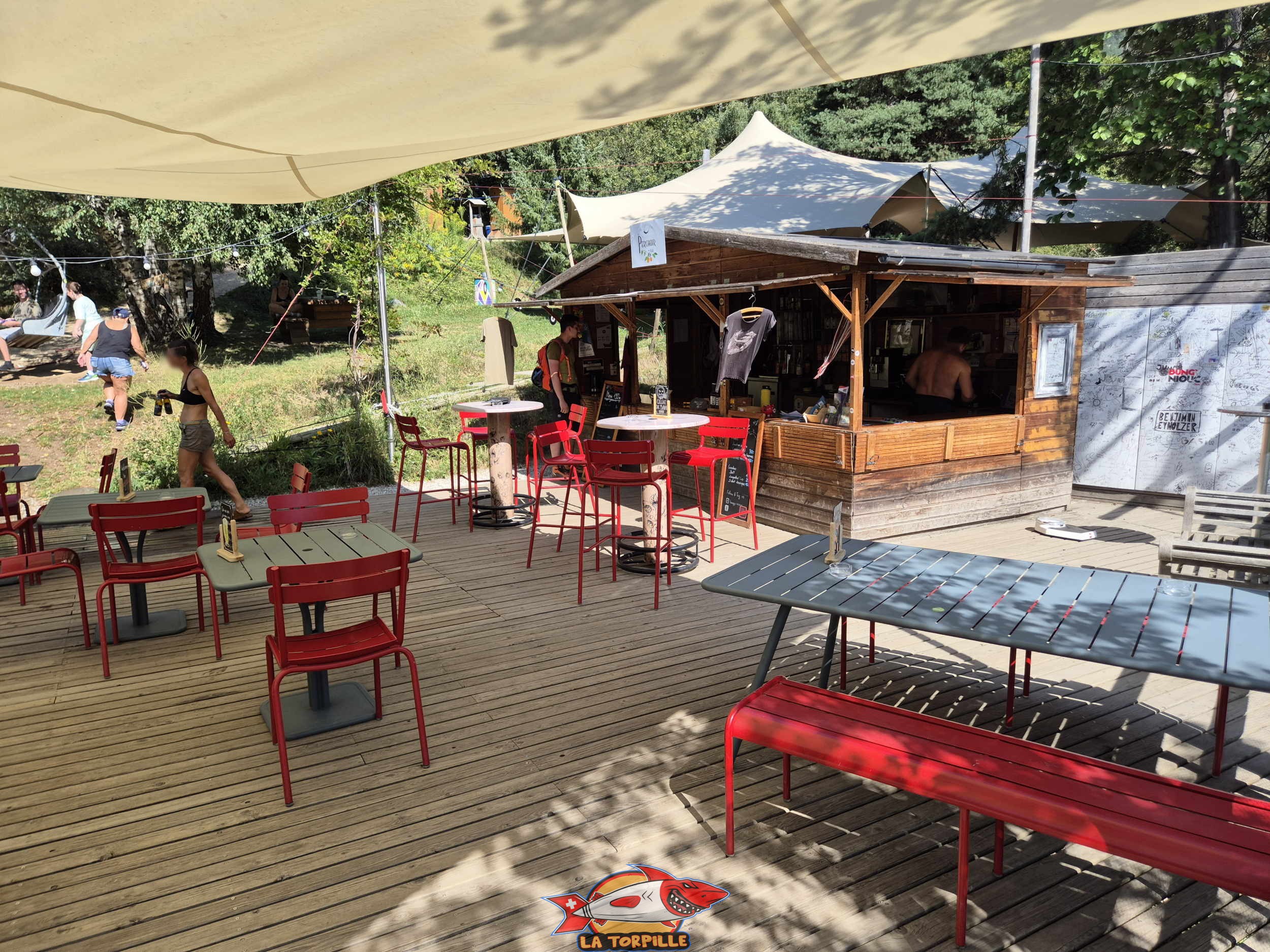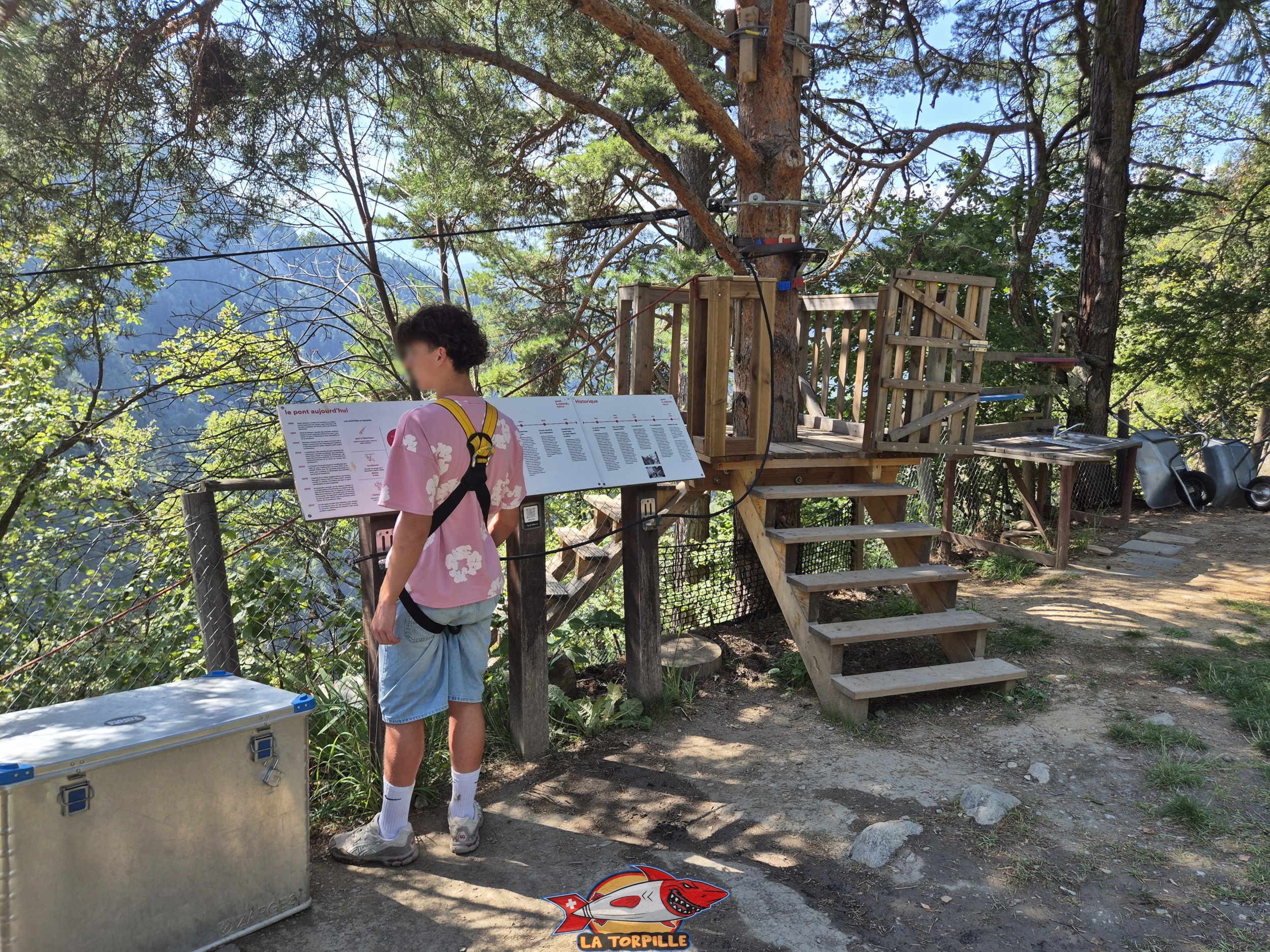 La plateforme de départ de la tyrolienne à côté de la buvette.