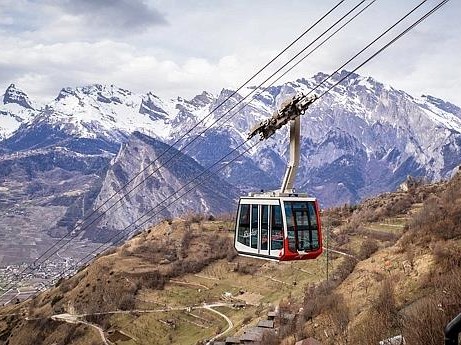 Le Téléphérique Riddes – Isérables relie le village de Riddes dans la vallée du Rhône à Isérables sur le versant Sud.