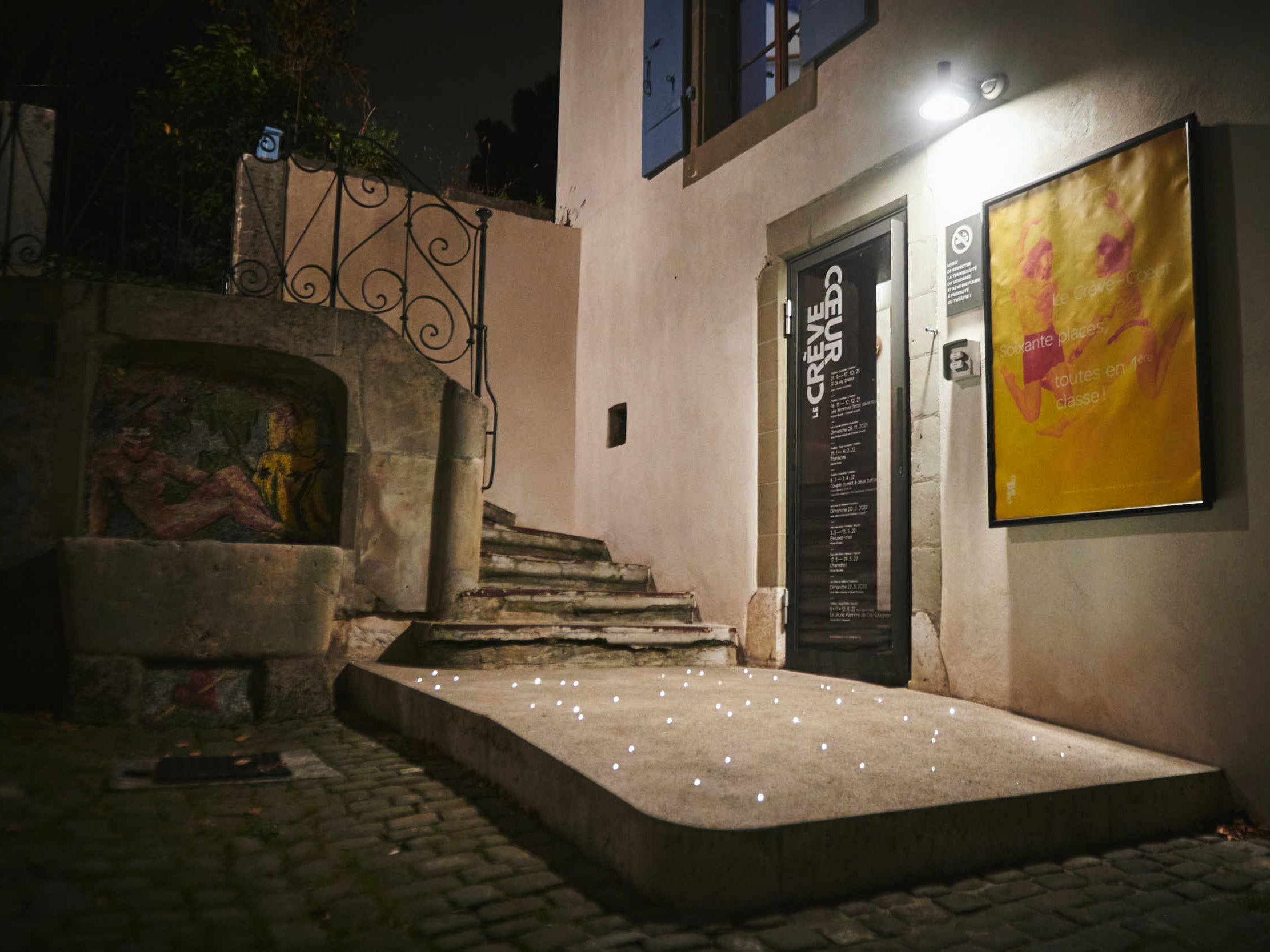 Le Théâtre Le Crève-Cœur se distingue par sa taille réduite et son ambiance conviviale : la salle fait environ 70 m² avec une scène de 7 m de large sur 2,8 m de haut pour 5 m de profondeur, et offre 60 places.
