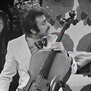 Bénédict Gampert (1939-2007) en 1973. Il était violoncelliste, mais aussi comédien, humoriste et directeur du Théâtre Le Crève-Cœur. Photo : rts.ch
