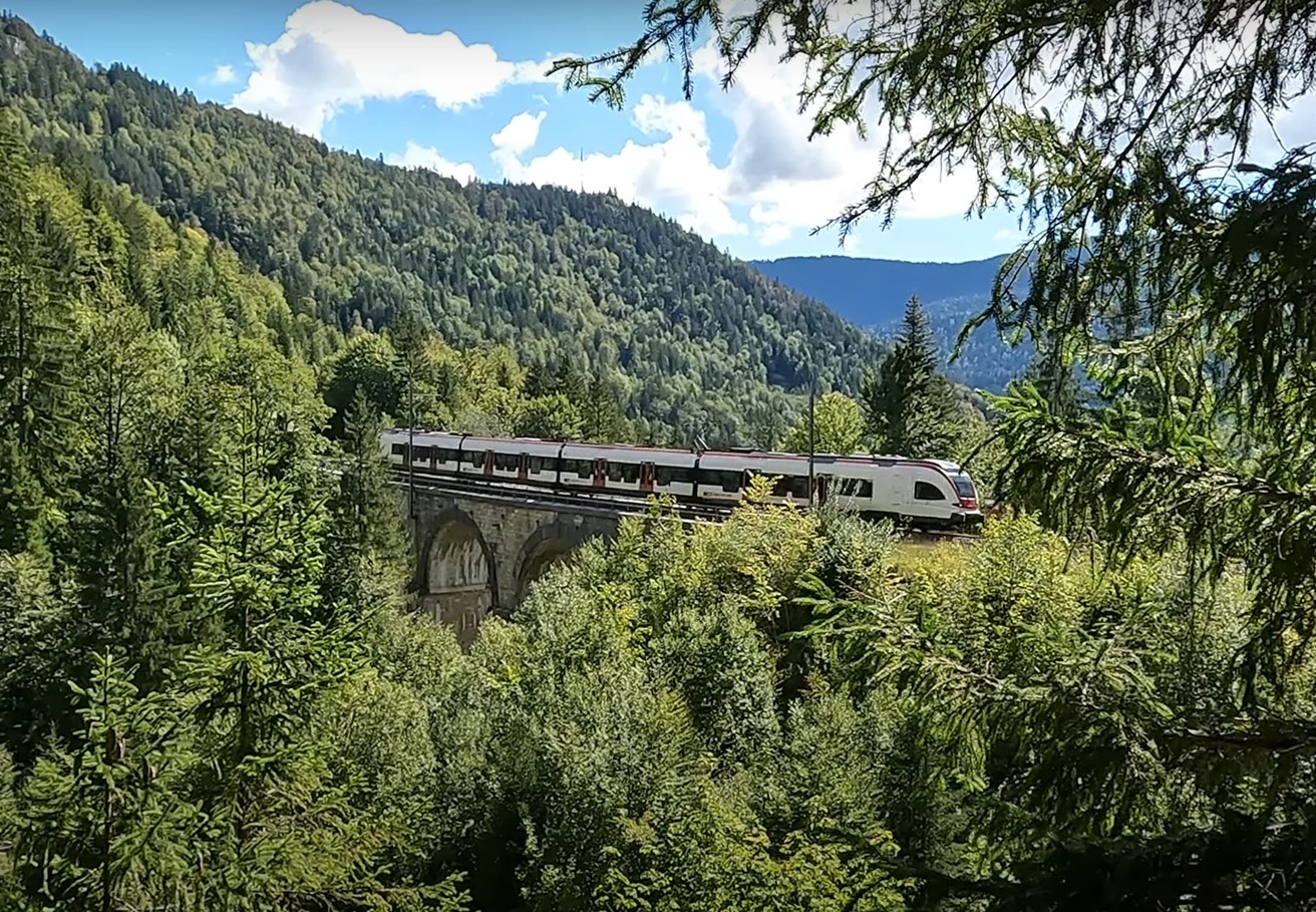 Le train dans la région du Val-de-Travers. Photo : Youtube