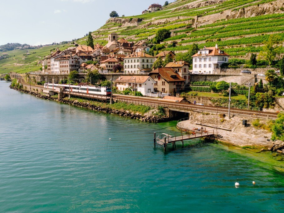Le village de St-Saphorin avec le passage d’un train. Photo : Facebook Switzerland