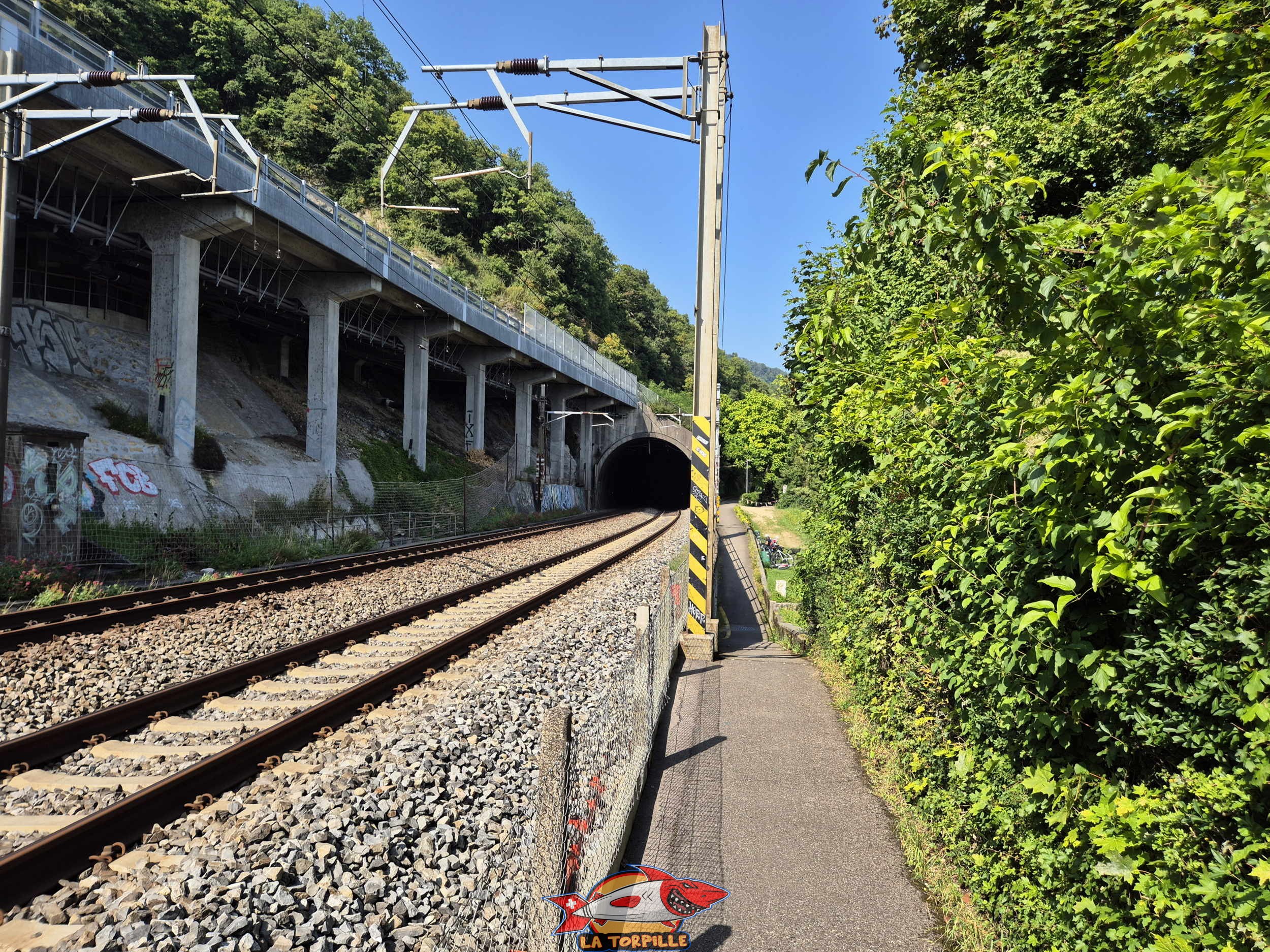La vue sur la route du lac et le chemin de fer. Au milieu de l’image, le passage sous-voie pour accéder au niveau de la route. Photo : Google Joel Nogueira