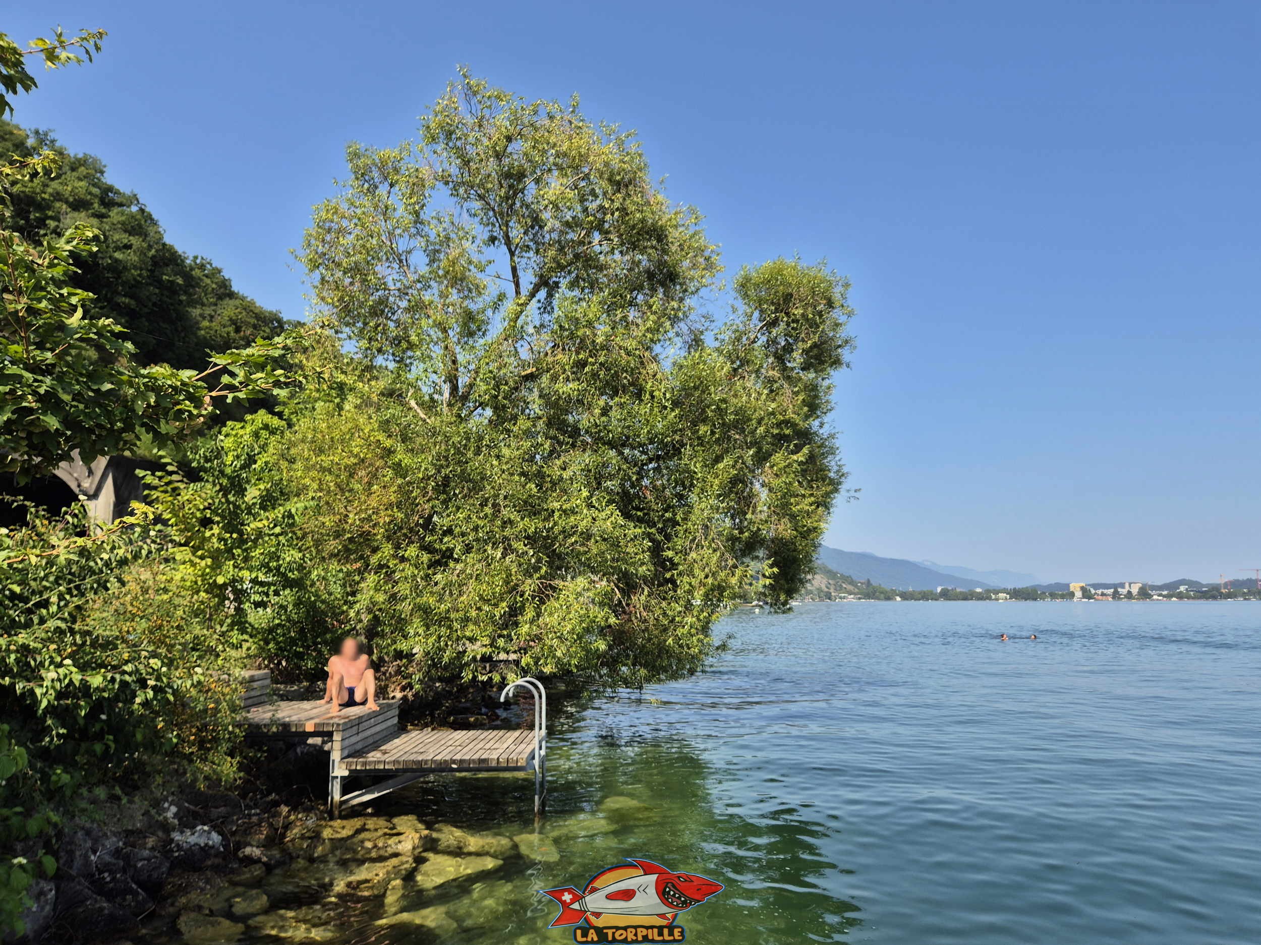Plusieurs pontons en bois munis d’une échelle permettent d’accéder au lac facilement.