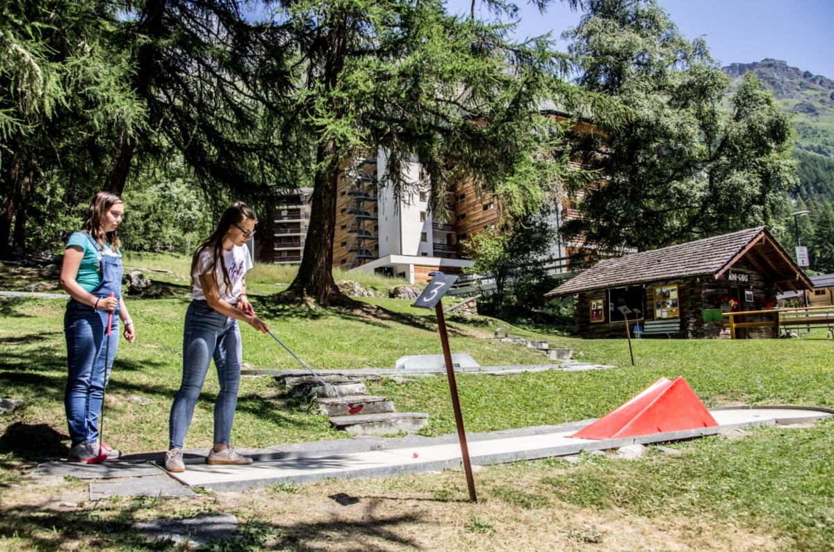 Une joueuse sur une piste de minigolf de Gryon dans les Alpes vaudoise. Fier de toi !