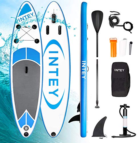 Un set de paddle gonflable avec la planche à gonfler, la pagaie, l’aileron, le leasch et un sac qui permet de tout transporter. Il faut compter environ 350 francs pour un paddle tout à fait correct.