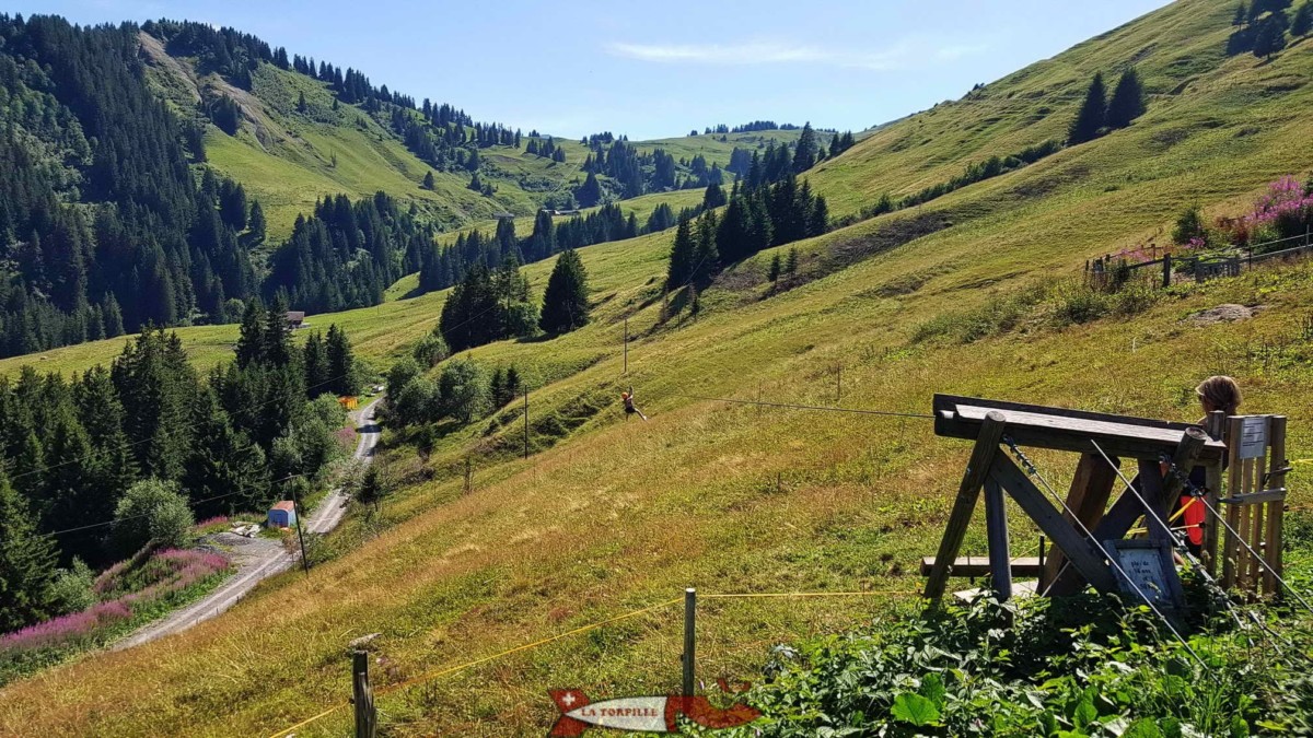 La Torpille présente les tyroliennes de plus de 100 mètres de longueur en Suisse romande qui sont soit isolées, soit associées à des accrobranches.